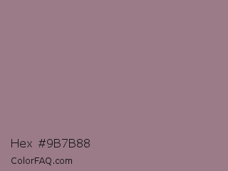 Hex #9b7b88 Color is a normal rose color and the nearest color is Mountbatten Pink #997a8d. Hex code #9b7b88 and RGB value is rgb(155,123,136). In RGB color space, this color is composed of 61% red, 48% green, 53% blue, In CMYK color space, this color is composed of 0% cyan, 21% magenta, 12% yellow , 39% black , In HSL color space, this color has a hue angle of 336° , 14% saturation and 55% lightness.