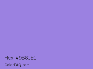 Hex #9b81e1 Color is a light indigo color and the nearest color is Lilac Bush #9874d3. Hex code #9b81e1 and RGB value is rgb(155,129,225). In RGB color space, this color is composed of 61% red, 51% green, 88% blue, In CMYK color space, this color is composed of 31% cyan, 43% magenta, 0% yellow , 12% black , In HSL color space, this color has a hue angle of 256° , 62% saturation and 69% lightness.
