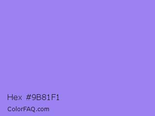 Hex #9b81f1 Color is a light indigo color and the nearest color is Medium Purple #9370db. Hex code #9b81f1 and RGB value is rgb(155,129,241). In RGB color space, this color is composed of 61% red, 51% green, 95% blue, In CMYK color space, this color is composed of 36% cyan, 46% magenta, 0% yellow , 5% black , In HSL color space, this color has a hue angle of 254° , 80% saturation and 73% lightness.