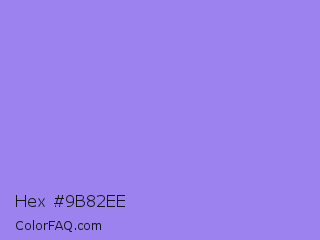 Hex #9b82ee Color is a light indigo color and the nearest color is Medium Purple #9370db. Hex code #9b82ee and RGB value is rgb(155,130,238). In RGB color space, this color is composed of 61% red, 51% green, 93% blue, In CMYK color space, this color is composed of 35% cyan, 45% magenta, 0% yellow , 7% black , In HSL color space, this color has a hue angle of 254° , 76% saturation and 72% lightness.