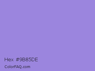 Hex #9b85de Color is a light indigo color and the nearest color is Lilac Bush #9874d3. Hex code #9b85de and RGB value is rgb(155,133,222). In RGB color space, this color is composed of 61% red, 52% green, 87% blue, In CMYK color space, this color is composed of 30% cyan, 40% magenta, 0% yellow , 13% black , In HSL color space, this color has a hue angle of 255° , 57% saturation and 70% lightness.
