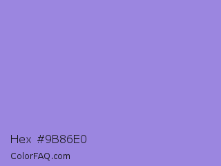 Hex #9b86e0 Color is a light indigo color and the nearest color is Lilac Bush #9874d3. Hex code #9b86e0 and RGB value is rgb(155,134,224). In RGB color space, this color is composed of 61% red, 53% green, 88% blue, In CMYK color space, this color is composed of 31% cyan, 40% magenta, 0% yellow , 12% black , In HSL color space, this color has a hue angle of 254° , 59% saturation and 70% lightness.