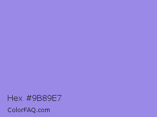 Hex #9b89e7 Color is a light indigo color and the nearest color is Dull Lavender #a899e6. Hex code #9b89e7 and RGB value is rgb(155,137,231). In RGB color space, this color is composed of 61% red, 54% green, 91% blue, In CMYK color space, this color is composed of 33% cyan, 41% magenta, 0% yellow , 9% black , In HSL color space, this color has a hue angle of 251° , 66% saturation and 72% lightness.