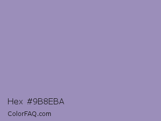 Hex #9b8eba Color is a light indigo color and the nearest color is Amethyst Smoke #a397b4. Hex code #9b8eba and RGB value is rgb(155,142,186). In RGB color space, this color is composed of 61% red, 56% green, 73% blue, In CMYK color space, this color is composed of 17% cyan, 24% magenta, 0% yellow , 27% black , In HSL color space, this color has a hue angle of 258° , 24% saturation and 64% lightness.