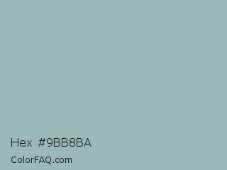 Hex #9bb8ba Color is a light cyan color and the nearest color is Shadow Green #9ac2b8. Hex code #9bb8ba and RGB value is rgb(155,184,186). In RGB color space, this color is composed of 61% red, 72% green, 73% blue, In CMYK color space, this color is composed of 17% cyan, 1% magenta, 0% yellow , 27% black , In HSL color space, this color has a hue angle of 184° , 18% saturation and 67% lightness.