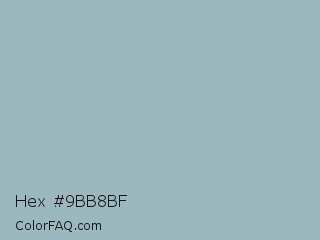 Hex #9bb8bf Color is a light cyan color and the nearest color is Shadow Green #9ac2b8. Hex code #9bb8bf and RGB value is rgb(155,184,191). In RGB color space, this color is composed of 61% red, 72% green, 75% blue, In CMYK color space, this color is composed of 19% cyan, 4% magenta, 0% yellow , 25% black , In HSL color space, this color has a hue angle of 192° , 22% saturation and 68% lightness.