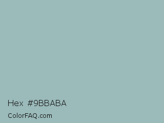 Hex #9bbaba Color is a light cyan color and the nearest color is Shadow Green #9ac2b8. Hex code #9bbaba and RGB value is rgb(155,186,186). In RGB color space, this color is composed of 61% red, 73% green, 73% blue, In CMYK color space, this color is composed of 17% cyan, 0% magenta, 0% yellow , 27% black , In HSL color space, this color has a hue angle of 180° , 18% saturation and 67% lightness.