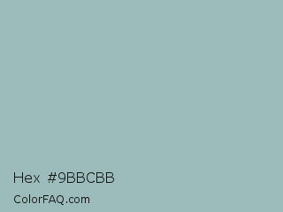 Hex #9bbcbb Color is a light cyan color and the nearest color is Shadow Green #9ac2b8. Hex code #9bbcbb and RGB value is rgb(155,188,187). In RGB color space, this color is composed of 61% red, 74% green, 73% blue, In CMYK color space, this color is composed of 18% cyan, 0% magenta, 1% yellow , 26% black , In HSL color space, this color has a hue angle of 178° , 20% saturation and 67% lightness.