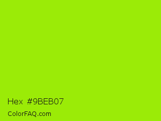 Hex #9beb07 Color is a normal green color and the nearest color is Spring Bud #a7fc00. Hex code #9beb07 and RGB value is rgb(155,235,7). In RGB color space, this color is composed of 61% red, 92% green, 3% blue, In CMYK color space, this color is composed of 34% cyan, 0% magenta, 97% yellow , 8% black , In HSL color space, this color has a hue angle of 81° , 94% saturation and 47% lightness.