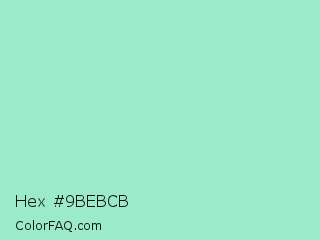 Hex #9bebcb Color is a light green color and the nearest color is Pale Robin Egg Blue #96ded1. Hex code #9bebcb and RGB value is rgb(155,235,203). In RGB color space, this color is composed of 61% red, 92% green, 80% blue, In CMYK color space, this color is composed of 34% cyan, 0% magenta, 14% yellow , 8% black , In HSL color space, this color has a hue angle of 156° , 67% saturation and 76% lightness.