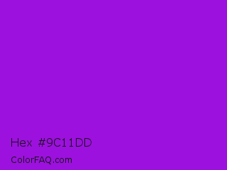Hex #9c11dd Color is a normal purple color and the nearest color is Dark Violet #9400d3. Hex code #9c11dd and RGB value is rgb(156,17,221). In RGB color space, this color is composed of 61% red, 7% green, 87% blue, In CMYK color space, this color is composed of 29% cyan, 92% magenta, 0% yellow , 13% black , In HSL color space, this color has a hue angle of 281° , 86% saturation and 47% lightness.
