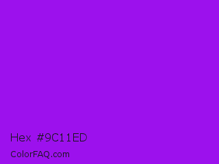 Hex #9c11ed Color is a normal purple color and the nearest color is Veronica #a020f0. Hex code #9c11ed and RGB value is rgb(156,17,237). In RGB color space, this color is composed of 61% red, 7% green, 93% blue, In CMYK color space, this color is composed of 34% cyan, 93% magenta, 0% yellow , 7% black , In HSL color space, this color has a hue angle of 278° , 87% saturation and 50% lightness.