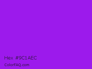 Hex #9c1aec Color is a normal purple color and the nearest color is Veronica #a020f0. Hex code #9c1aec and RGB value is rgb(156,26,236). In RGB color space, this color is composed of 61% red, 10% green, 93% blue, In CMYK color space, this color is composed of 34% cyan, 89% magenta, 0% yellow , 7% black , In HSL color space, this color has a hue angle of 277° , 85% saturation and 51% lightness.