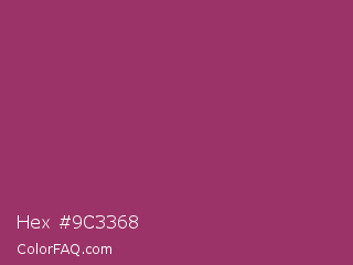 Hex #9c3368 Color is a normal rose color and the nearest color is Amaranth Deep Purple #9f2b68. Hex code #9c3368 and RGB value is rgb(156,51,104). In RGB color space, this color is composed of 61% red, 20% green, 41% blue, In CMYK color space, this color is composed of 0% cyan, 67% magenta, 33% yellow , 39% black , In HSL color space, this color has a hue angle of 330° , 51% saturation and 41% lightness.