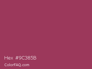 Hex #9c385b Color is a normal rose color and the nearest color is Vin Rouge #983d61. Hex code #9c385b and RGB value is rgb(156,56,91). In RGB color space, this color is composed of 61% red, 22% green, 36% blue, In CMYK color space, this color is composed of 0% cyan, 64% magenta, 42% yellow , 39% black , In HSL color space, this color has a hue angle of 339° , 47% saturation and 42% lightness.