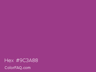 Hex #9c3a88 Color is a normal magenta color and the nearest color is Maximum Red Purple #a63a79. Hex code #9c3a88 and RGB value is rgb(156,58,136). In RGB color space, this color is composed of 61% red, 23% green, 53% blue, In CMYK color space, this color is composed of 0% cyan, 63% magenta, 13% yellow , 39% black , In HSL color space, this color has a hue angle of 312° , 46% saturation and 42% lightness.