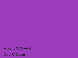 Hex #9c3ebb Color is a normal purple color and the nearest color is Purple Plum #9c51b6. Hex code #9c3ebb and RGB value is rgb(156,62,187). In RGB color space, this color is composed of 61% red, 24% green, 73% blue, In CMYK color space, this color is composed of 17% cyan, 67% magenta, 0% yellow , 27% black , In HSL color space, this color has a hue angle of 285° , 50% saturation and 49% lightness.