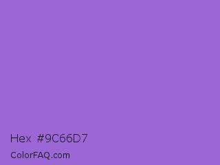Hex #9c66d7 Color is a light violet color and the nearest color is Dark Pastel Purple #966fd6. Hex code #9c66d7 and RGB value is rgb(156,102,215). In RGB color space, this color is composed of 61% red, 40% green, 84% blue, In CMYK color space, this color is composed of 27% cyan, 53% magenta, 0% yellow , 16% black , In HSL color space, this color has a hue angle of 269° , 59% saturation and 62% lightness.