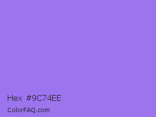 Hex #9c74ee Color is a light indigo color and the nearest color is Medium Purple #9370db. Hex code #9c74ee and RGB value is rgb(156,116,238). In RGB color space, this color is composed of 61% red, 45% green, 93% blue, In CMYK color space, this color is composed of 34% cyan, 51% magenta, 0% yellow , 7% black , In HSL color space, this color has a hue angle of 260° , 78% saturation and 69% lightness.