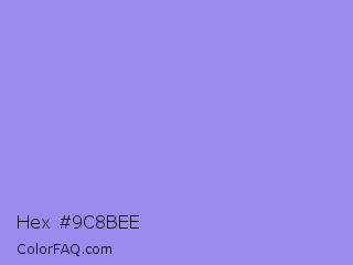 Hex #9c8bee Color is a light indigo color and the nearest color is Dull Lavender #a899e6. Hex code #9c8bee and RGB value is rgb(156,139,238). In RGB color space, this color is composed of 61% red, 55% green, 93% blue, In CMYK color space, this color is composed of 34% cyan, 42% magenta, 0% yellow , 7% black , In HSL color space, this color has a hue angle of 250° , 74% saturation and 74% lightness.