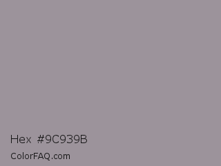 Hex #9c939b Color is a normal magenta color and the nearest color is Spanish Gray #989898. Hex code #9c939b and RGB value is rgb(156,147,155). In RGB color space, this color is composed of 61% red, 58% green, 61% blue, In CMYK color space, this color is composed of 0% cyan, 6% magenta, 1% yellow , 39% black , In HSL color space, this color has a hue angle of 307° , 4% saturation and 59% lightness.