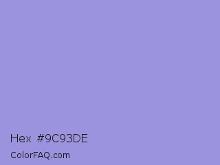 Hex #9c93de Color is a light indigo color and the nearest color is Dull Lavender #a899e6. Hex code #9c93de and RGB value is rgb(156,147,222). In RGB color space, this color is composed of 61% red, 58% green, 87% blue, In CMYK color space, this color is composed of 30% cyan, 34% magenta, 0% yellow , 13% black , In HSL color space, this color has a hue angle of 247° , 53% saturation and 72% lightness.