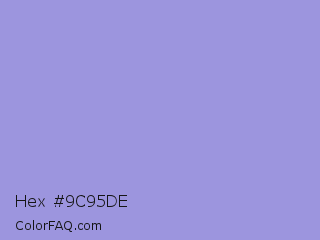 Hex #9c95de Color is a light indigo color and the nearest color is Dull Lavender #a899e6. Hex code #9c95de and RGB value is rgb(156,149,222). In RGB color space, this color is composed of 61% red, 58% green, 87% blue, In CMYK color space, this color is composed of 30% cyan, 33% magenta, 0% yellow , 13% black , In HSL color space, this color has a hue angle of 246° , 53% saturation and 73% lightness.