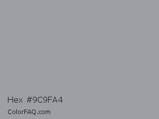 Hex #9c9fa4 Color is a light blue color and the nearest color is Star Dust #9f9f9c. Hex code #9c9fa4 and RGB value is rgb(156,159,164). In RGB color space, this color is composed of 61% red, 62% green, 64% blue, In CMYK color space, this color is composed of 5% cyan, 3% magenta, 0% yellow , 36% black , In HSL color space, this color has a hue angle of 218° , 4% saturation and 63% lightness.