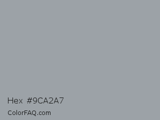 Hex #9ca2a7 Color is a light blue color and the nearest color is Manatee #979aaa. Hex code #9ca2a7 and RGB value is rgb(156,162,167). In RGB color space, this color is composed of 61% red, 64% green, 65% blue, In CMYK color space, this color is composed of 7% cyan, 3% magenta, 0% yellow , 35% black , In HSL color space, this color has a hue angle of 207° , 6% saturation and 63% lightness.