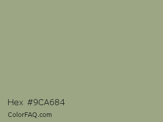 Hex #9ca684 Color is a normal lime color and the nearest color is Sage #9ea587. Hex code #9ca684 and RGB value is rgb(156,166,132). In RGB color space, this color is composed of 61% red, 65% green, 52% blue, In CMYK color space, this color is composed of 6% cyan, 0% magenta, 20% yellow , 35% black , In HSL color space, this color has a hue angle of 78° , 16% saturation and 58% lightness.
