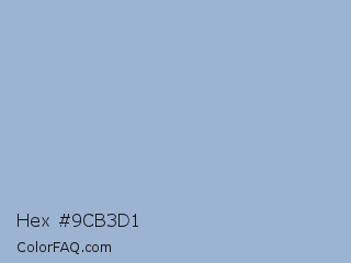 Hex #9cb3d1 Color is a light blue color and the nearest color is Rock Blue #9eb1cd. Hex code #9cb3d1 and RGB value is rgb(156,179,209). In RGB color space, this color is composed of 61% red, 70% green, 82% blue, In CMYK color space, this color is composed of 25% cyan, 14% magenta, 0% yellow , 18% black , In HSL color space, this color has a hue angle of 214° , 37% saturation and 72% lightness.