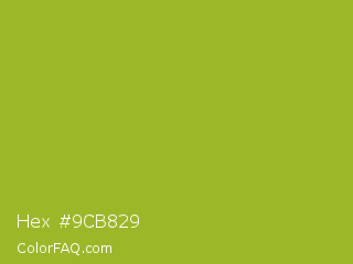 Hex #9cb829 Color is a normal lime color and the nearest color is Citron #9fa91f. Hex code #9cb829 and RGB value is rgb(156,184,41). In RGB color space, this color is composed of 61% red, 72% green, 16% blue, In CMYK color space, this color is composed of 15% cyan, 0% magenta, 78% yellow , 28% black , In HSL color space, this color has a hue angle of 72° , 64% saturation and 44% lightness.