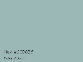 Hex #9cb8b6 Color is a light cyan color and the nearest color is Shadow Green #9ac2b8. Hex code #9cb8b6 and RGB value is rgb(156,184,182). In RGB color space, this color is composed of 61% red, 72% green, 71% blue, In CMYK color space, this color is composed of 15% cyan, 0% magenta, 1% yellow , 28% black , In HSL color space, this color has a hue angle of 176° , 16% saturation and 67% lightness.