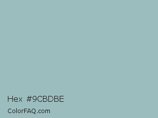 Hex #9cbdbe Color is a light cyan color and the nearest color is Shadow Green #9ac2b8. Hex code #9cbdbe and RGB value is rgb(156,189,190). In RGB color space, this color is composed of 61% red, 74% green, 75% blue, In CMYK color space, this color is composed of 18% cyan, 1% magenta, 0% yellow , 25% black , In HSL color space, this color has a hue angle of 182° , 21% saturation and 68% lightness.