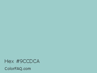 Hex #9ccdca Color is a light cyan color and the nearest color is Sinbad #9fd7d3. Hex code #9ccdca and RGB value is rgb(156,205,202). In RGB color space, this color is composed of 61% red, 80% green, 79% blue, In CMYK color space, this color is composed of 24% cyan, 0% magenta, 1% yellow , 20% black , In HSL color space, this color has a hue angle of 176° , 33% saturation and 71% lightness.