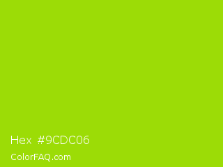 Hex #9cdc06 Color is a normal lime color and the nearest color is Vivid Lime Green #a6d608. Hex code #9cdc06 and RGB value is rgb(156,220,6). In RGB color space, this color is composed of 61% red, 86% green, 2% blue, In CMYK color space, this color is composed of 29% cyan, 0% magenta, 97% yellow , 14% black , In HSL color space, this color has a hue angle of 78° , 95% saturation and 44% lightness.