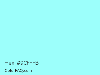 Hex #9cfffb Color is a very light cyan color and the nearest color is Waterspout #a4f4f9. Hex code #9cfffb and RGB value is rgb(156,255,251). In RGB color space, this color is composed of 61% red, 100% green, 98% blue, In CMYK color space, this color is composed of 39% cyan, 0% magenta, 2% yellow , 0% black , In HSL color space, this color has a hue angle of 178° , 100% saturation and 81% lightness.
