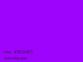 Hex #9d04fc Color is a normal purple color and the nearest color is Vivid Violet #9f00ff. Hex code #9d04fc and RGB value is rgb(157,4,252). In RGB color space, this color is composed of 62% red, 2% green, 99% blue, In CMYK color space, this color is composed of 38% cyan, 98% magenta, 0% yellow , 1% black , In HSL color space, this color has a hue angle of 277° , 98% saturation and 50% lightness.