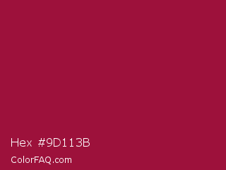 Hex #9d113b Color is a normal rose color and the nearest color is Vivid Burgundy #9f1d35. Hex code #9d113b and RGB value is rgb(157,17,59). In RGB color space, this color is composed of 62% red, 7% green, 23% blue, In CMYK color space, this color is composed of 0% cyan, 89% magenta, 62% yellow , 38% black , In HSL color space, this color has a hue angle of 342° , 80% saturation and 34% lightness.