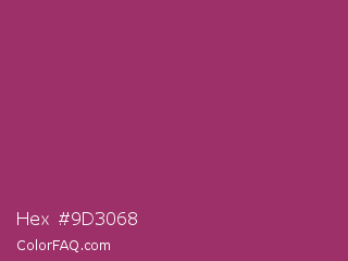 Hex #9d3068 Color is a normal rose color and the nearest color is Amaranth Deep Purple #9f2b68. Hex code #9d3068 and RGB value is rgb(157,48,104). In RGB color space, this color is composed of 62% red, 19% green, 41% blue, In CMYK color space, this color is composed of 0% cyan, 69% magenta, 34% yellow , 38% black , In HSL color space, this color has a hue angle of 329° , 53% saturation and 40% lightness.
