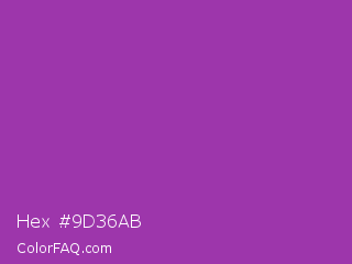 Hex #9d36ab Color is a normal magenta color and the nearest color is Purpureus #9a4eae. Hex code #9d36ab and RGB value is rgb(157,54,171). In RGB color space, this color is composed of 62% red, 21% green, 67% blue, In CMYK color space, this color is composed of 8% cyan, 68% magenta, 0% yellow , 33% black , In HSL color space, this color has a hue angle of 293° , 52% saturation and 44% lightness.