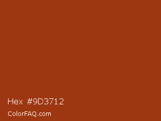 Hex #9d3712 Color is a normal orange color and the nearest color is Cognac #9f381d. Hex code #9d3712 and RGB value is rgb(157,55,18). In RGB color space, this color is composed of 62% red, 22% green, 7% blue, In CMYK color space, this color is composed of 0% cyan, 65% magenta, 89% yellow , 38% black , In HSL color space, this color has a hue angle of 16° , 79% saturation and 34% lightness.