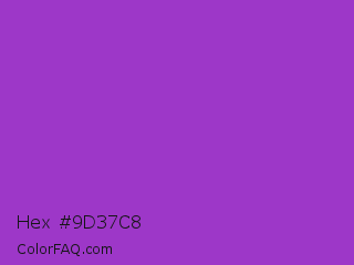 Hex #9d37c8 Color is a normal purple color and the nearest color is Dark Orchid #9932cc. Hex code #9d37c8 and RGB value is rgb(157,55,200). In RGB color space, this color is composed of 62% red, 22% green, 78% blue, In CMYK color space, this color is composed of 22% cyan, 73% magenta, 0% yellow , 22% black , In HSL color space, this color has a hue angle of 282° , 57% saturation and 50% lightness.