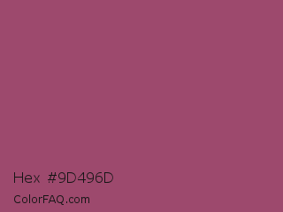 Hex #9d496d Color is a normal rose color and the nearest color is Magenta Haze #9f4576. Hex code #9d496d and RGB value is rgb(157,73,109). In RGB color space, this color is composed of 62% red, 29% green, 43% blue, In CMYK color space, this color is composed of 0% cyan, 54% magenta, 31% yellow , 38% black , In HSL color space, this color has a hue angle of 334° , 37% saturation and 45% lightness.