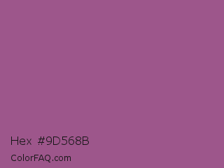Hex #9d568b Color is a normal magenta color and the nearest color is Antique Fuchsia #915c83. Hex code #9d568b and RGB value is rgb(157,86,139). In RGB color space, this color is composed of 62% red, 34% green, 55% blue, In CMYK color space, this color is composed of 0% cyan, 45% magenta, 11% yellow , 38% black , In HSL color space, this color has a hue angle of 315° , 29% saturation and 48% lightness.