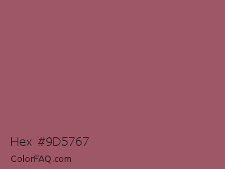 Hex #9d5767 Color is a normal red color and the nearest color is Rose Dust #9e5e6f. Hex code #9d5767 and RGB value is rgb(157,87,103). In RGB color space, this color is composed of 62% red, 34% green, 40% blue, In CMYK color space, this color is composed of 0% cyan, 45% magenta, 34% yellow , 38% black , In HSL color space, this color has a hue angle of 346° , 29% saturation and 48% lightness.