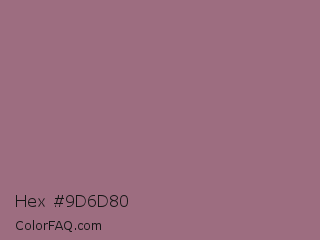 Hex #9d6d80 Color is a normal rose color and the nearest color is Bazaar #98777b. Hex code #9d6d80 and RGB value is rgb(157,109,128). In RGB color space, this color is composed of 62% red, 43% green, 50% blue, In CMYK color space, this color is composed of 0% cyan, 31% magenta, 18% yellow , 38% black , In HSL color space, this color has a hue angle of 336° , 20% saturation and 52% lightness.