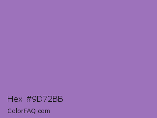 Hex #9d72bb Color is a normal purple color and the nearest color is Wisteria #9771b5. Hex code #9d72bb and RGB value is rgb(157,114,187). In RGB color space, this color is composed of 62% red, 45% green, 73% blue, In CMYK color space, this color is composed of 16% cyan, 39% magenta, 0% yellow , 27% black , In HSL color space, this color has a hue angle of 275° , 35% saturation and 59% lightness.