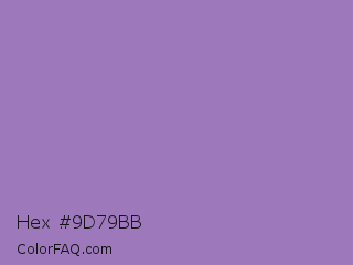 Hex #9d79bb Color is a normal purple color and the nearest color is Purple Mountains Majesty #9678b6. Hex code #9d79bb and RGB value is rgb(157,121,187). In RGB color space, this color is composed of 62% red, 47% green, 73% blue, In CMYK color space, this color is composed of 16% cyan, 35% magenta, 0% yellow , 27% black , In HSL color space, this color has a hue angle of 273° , 33% saturation and 60% lightness.