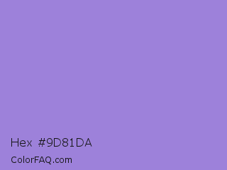 Hex #9d81da Color is a light indigo color and the nearest color is Lilac Bush #9874d3. Hex code #9d81da and RGB value is rgb(157,129,218). In RGB color space, this color is composed of 62% red, 51% green, 85% blue, In CMYK color space, this color is composed of 28% cyan, 41% magenta, 0% yellow , 15% black , In HSL color space, this color has a hue angle of 259° , 55% saturation and 68% lightness.